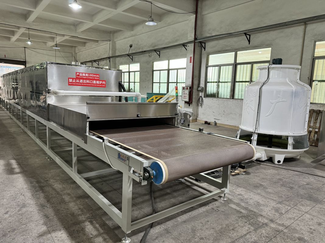 Эта передовая система включает в себя конвейер подачи из нержавеющей стали, микроволновый стерилизационный туннель, блок интеллектуального контроля температуры, секцию охлаждения после сушки, панель управления на базе ПЛК с мониторингом в реальном времени и интерфейс автоматической упаковки. Вся линия полностью настраиваемая для включения модулей предварительной обработки или интегрированных упаковочных решений.